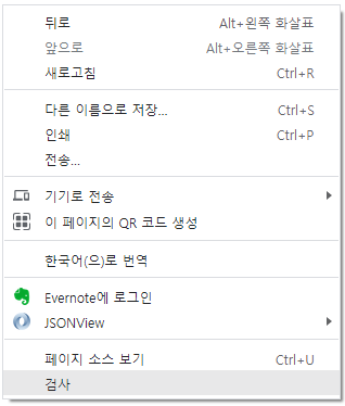 | 1) 홈페이지에서 마우스 왼쪽 클릭 --> "검사" 클릭 |
