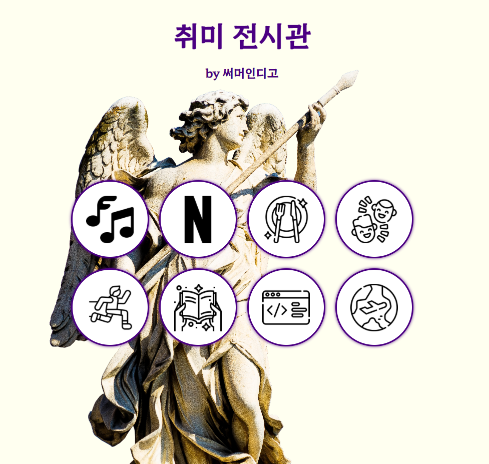 취미 전시관 홈페이지 만들기 (1일차) hover 기능, 이미지 주소 설정 등